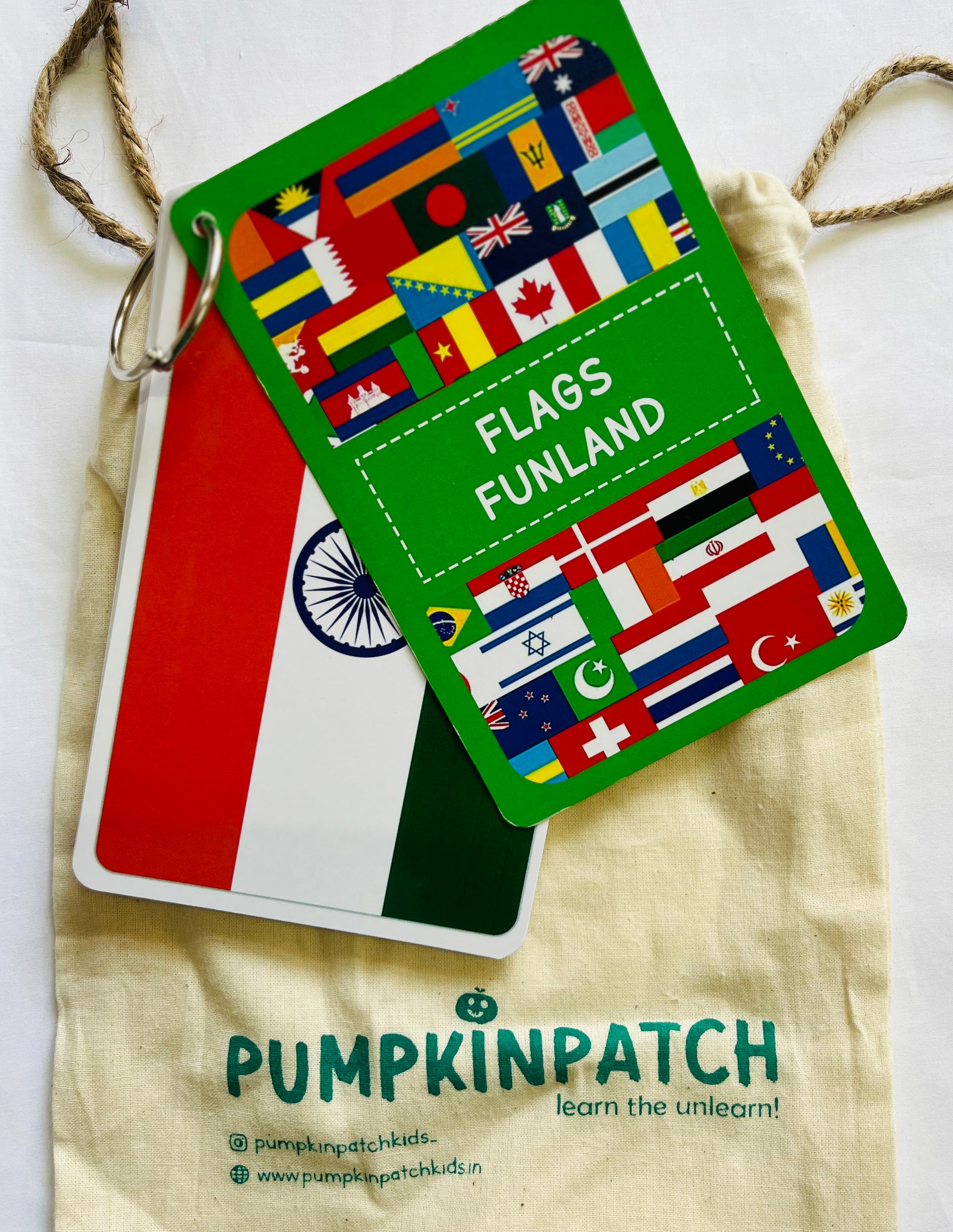 "Flags Funland" is more than just a game; it's an interactive learning experience. With a colorful map as the playing board and a set of flag cards, children can match flags to their respective countries, learning about geography and national symbols as they play. Each flag card comes with fascinating facts, allowing players to gain insights into different cultures and landmarks, enriching their general knowledge with every turn.
