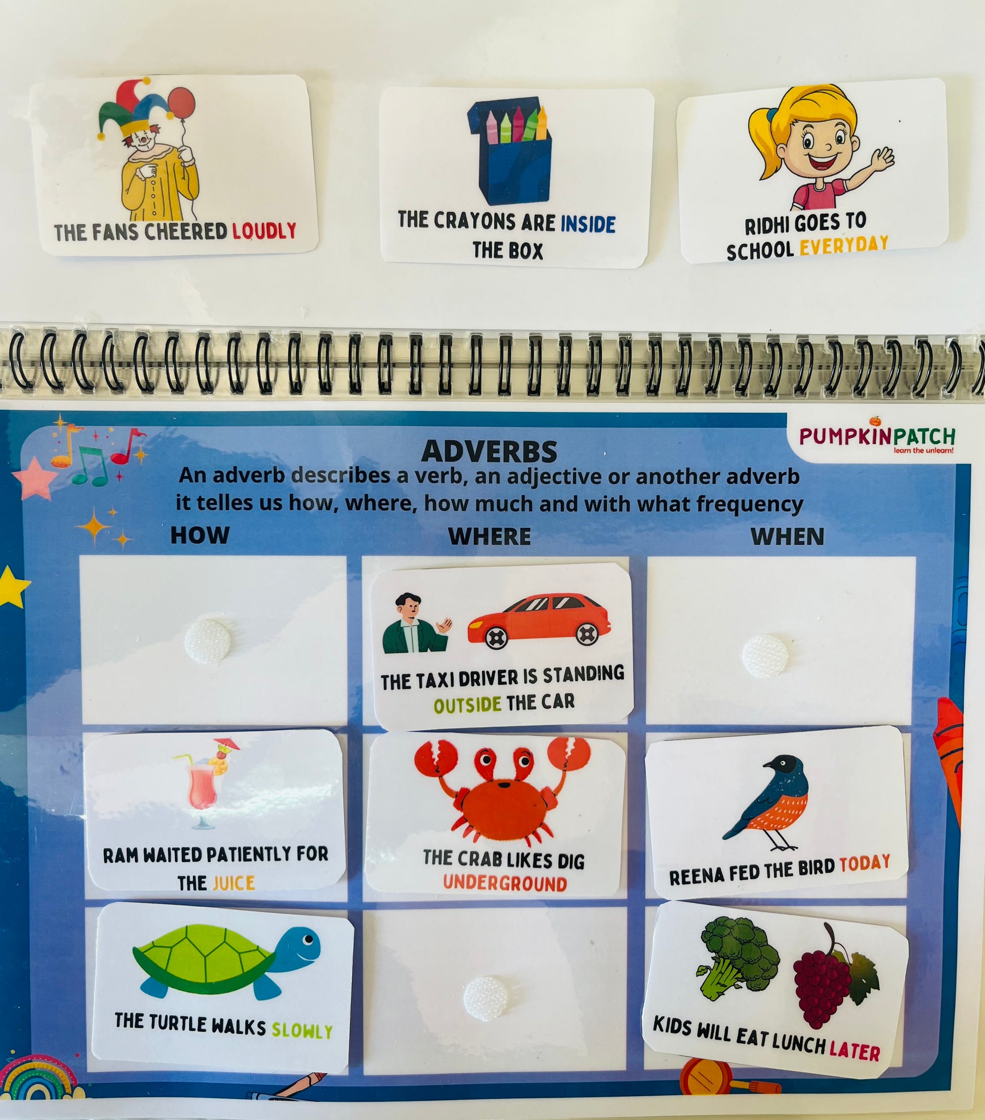 Introduce your child to the building blocks of language with the "Grammar Velcro Activity Binder," designed for young learners aged 3-7 years. This hands-on educational tool turns grammar lessons into a captivating game that children will ask to play again and again.